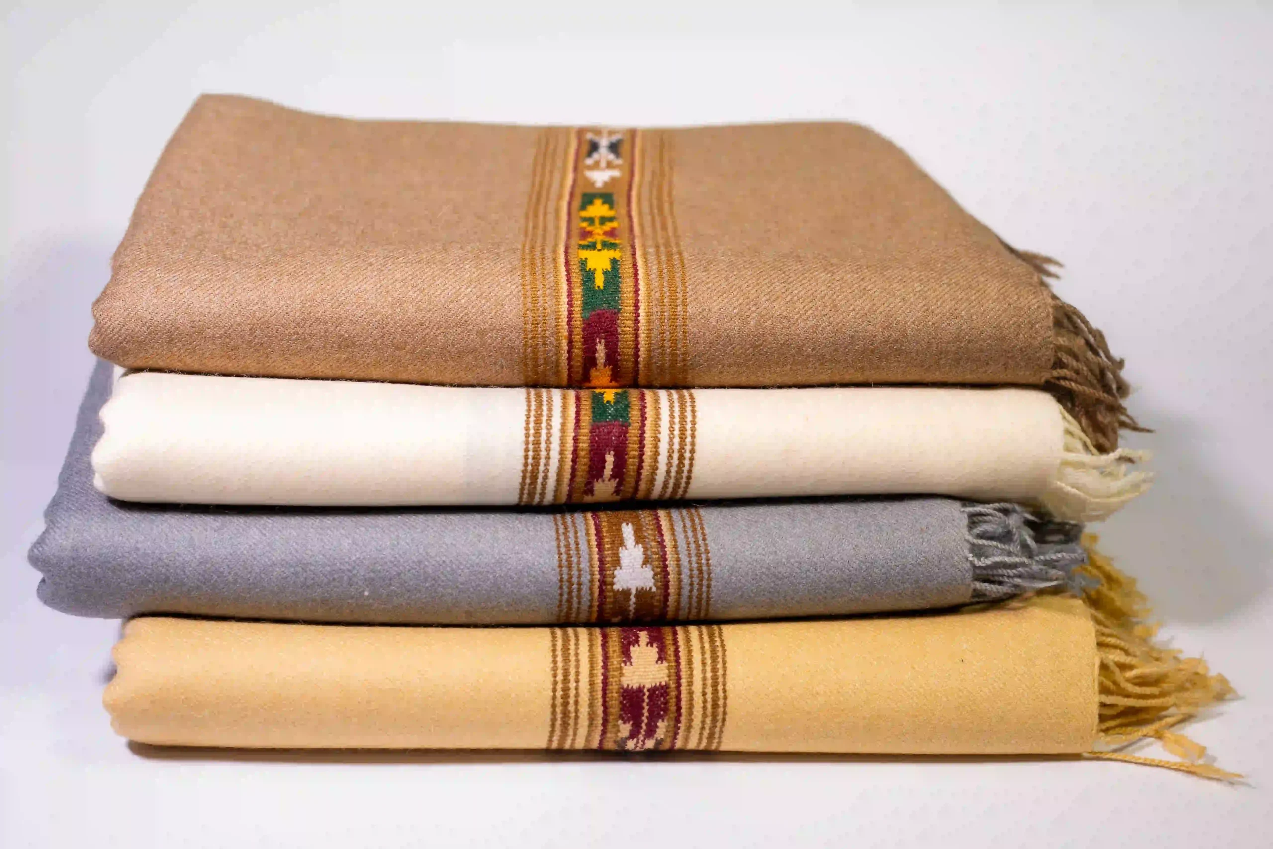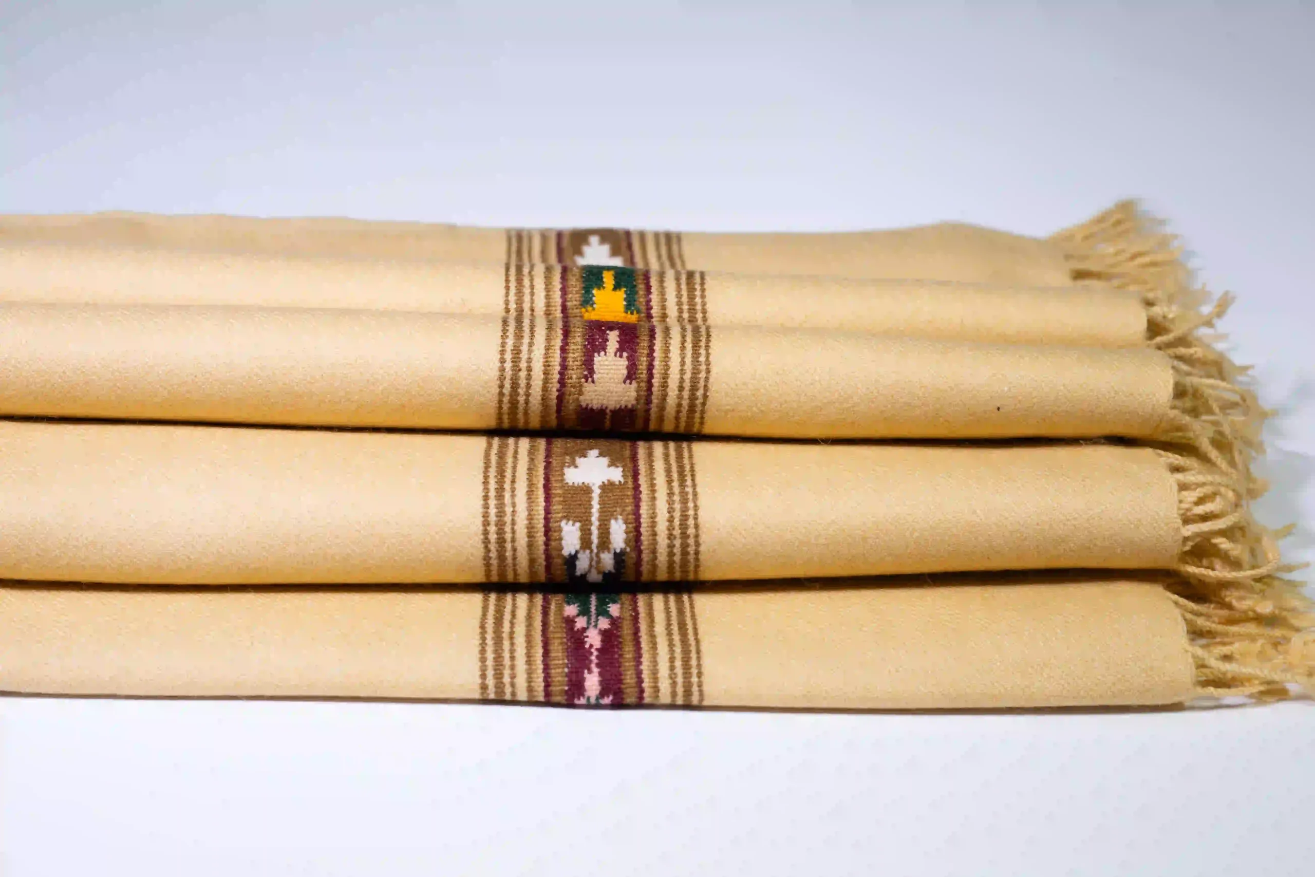 This camel-colored shawl showcases the beautiful Chinar-Gullay pattern, handcrafted by Islampur artisans using premium 48/2 wool. The traditional twill weave creates a durable yet soft fabric that embodies Swati cultural heritage. Perfect for both formal events and daily wear, it represents timeless craftsmanship from the Swat Valley.