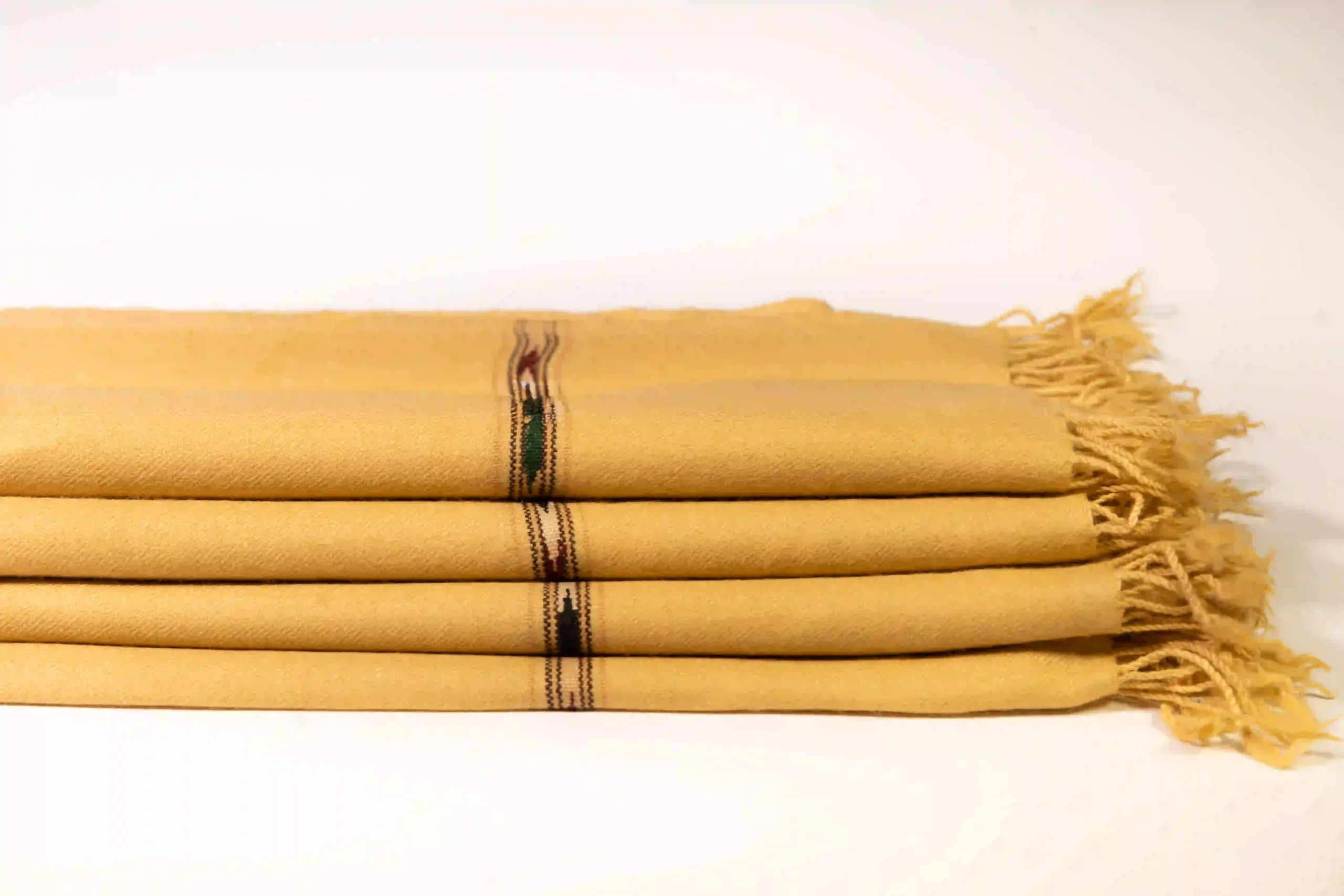 Crafted from fine 72/2 wool by Islampur artisans, this camel-colored shawl offers lightweight warmth and superior comfort. The traditional weaving techniques create a fabric that drapes beautifully while maintaining cultural authenticity. Perfect for those who appreciate fine materials and traditional craftsmanship.