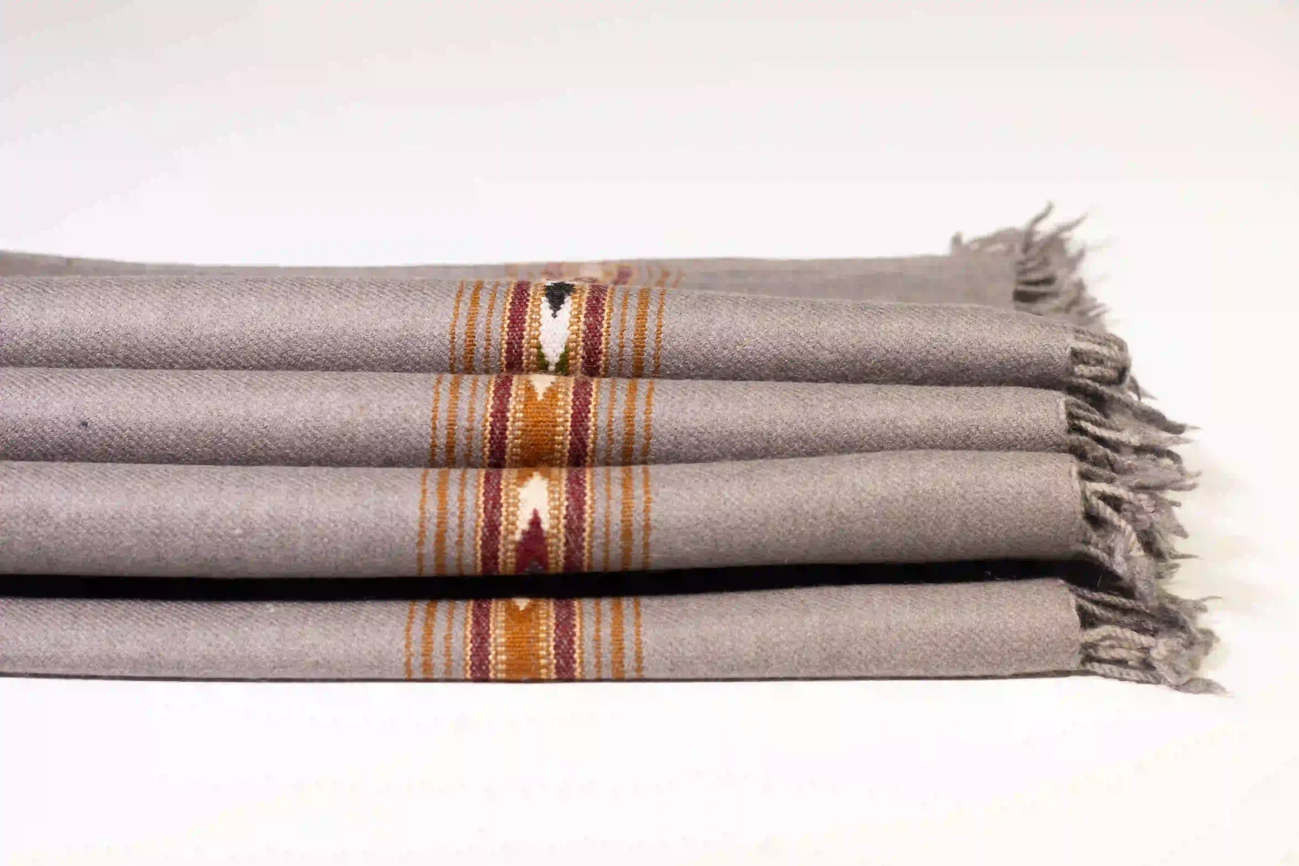The gray background of this shawl beautifully highlights the vibrant Satrangay Gull pattern, handwoven by Islampur craftsmen using 48/2 wool. This traditional floral design, representing Swat’s natural beauty, is woven using authentic twill techniques that ensure both durability and comfort. A versatile piece that bridges traditional craftsmanship with contemporary style.