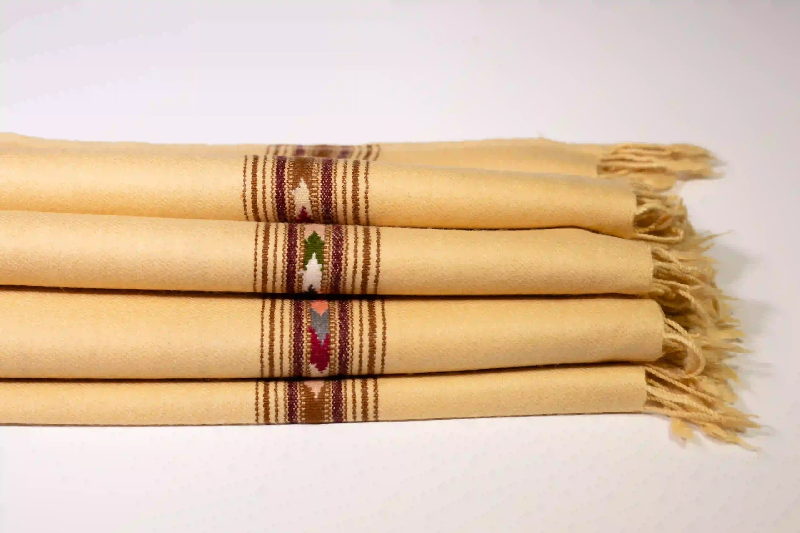 This camel-colored shawl features the vibrant Satrangay Gull pattern, handcrafted by Islampur weavers using premium 48/2 wool. The multi-colored floral design represents the rich biodiversity of Swat Valley, while the traditional twill weave provides excellent warmth and drape. A perfect accessory that celebrates cultural heritage through its intricate patterns.