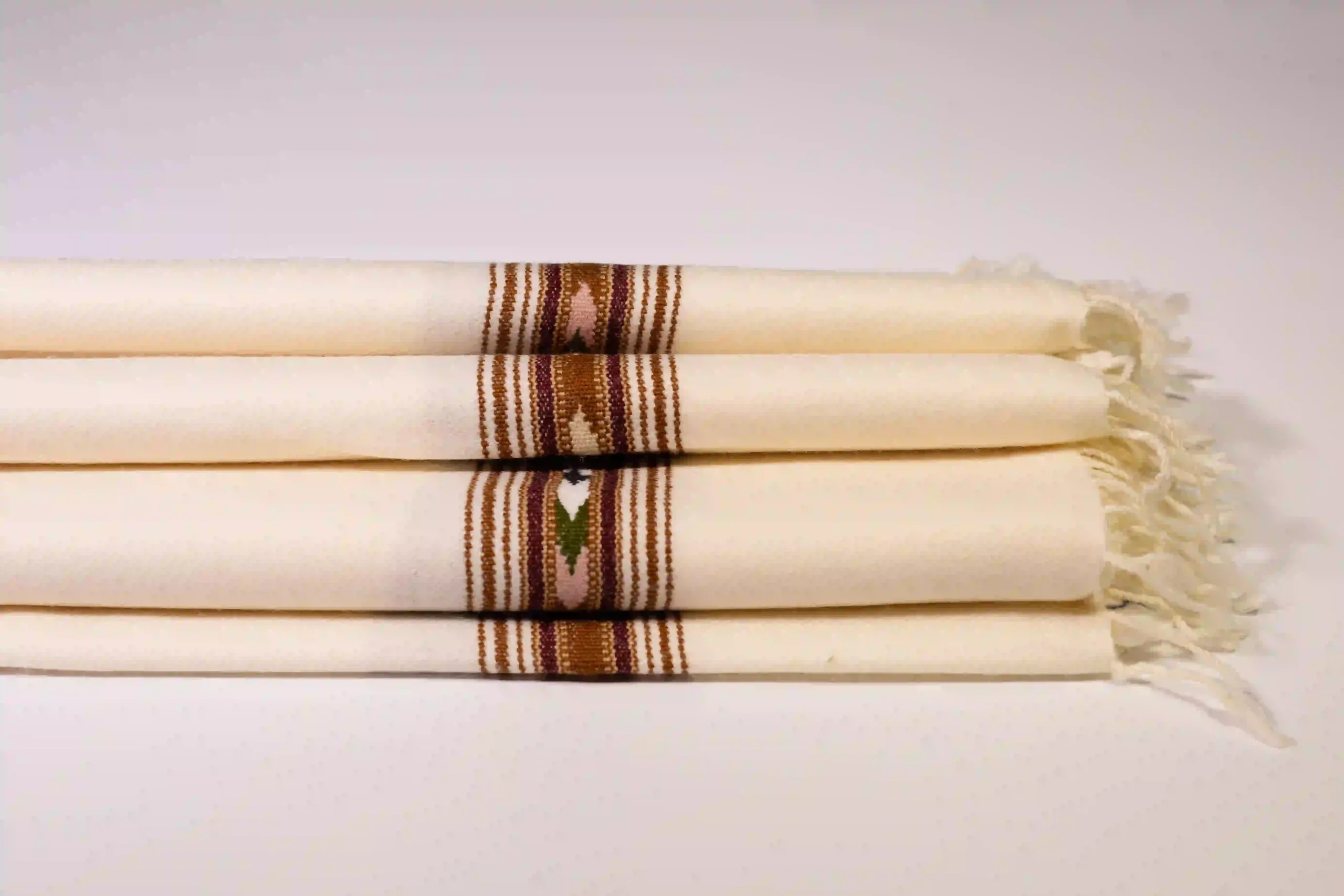 This off-white shawl provides the perfect canvas for the colorful Satrangay Gull pattern, handwoven by Islampur artisans using 48/2 wool. The traditional floral design pops against the clean background, creating a striking visual effect. Woven using time-honored twill techniques, this piece represents the perfect marriage of traditional Swati artistry with timeless elegance.