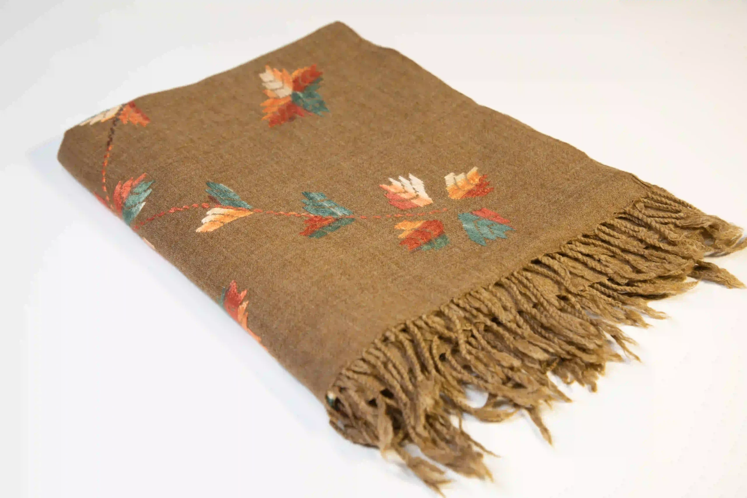 Experience the lighter touch of Swat Valley craftsmanship with this beautiful shawl. Available in Brown, Camel, Gray, and Off-White, this collection offers a perfect blend of warmth and refined style.
